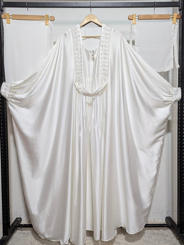 Redefine modest elegance with our Defined Drape Kaftan, crafted from soft Nada fabric to ensure a perfect balance of style, structure, and all-day comfort. This kaftan-style abaya is designed with intricate pleated detailing and subtle tailoring that enhances its graceful silhouette — ideal for both daily wear and modest occasions.