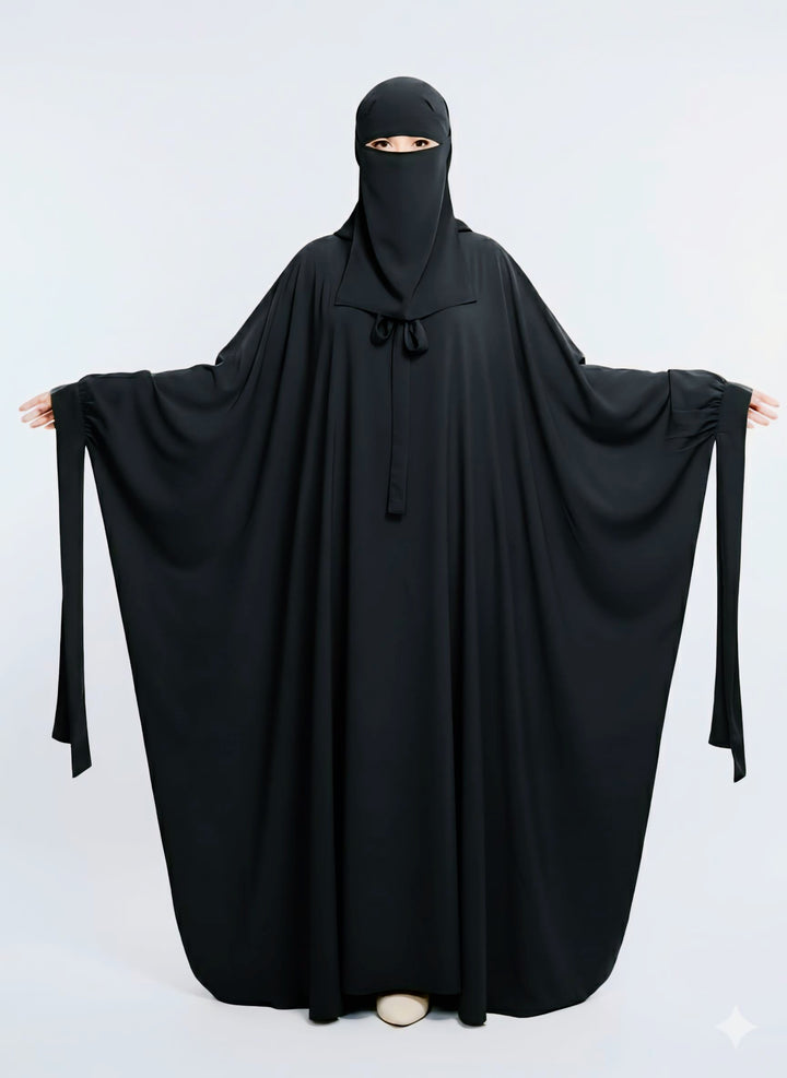 Complete Coordinated Look: Comes with a matching stole and niqab, both in the same fabric and shade, to create a seamless, well-matched outfit for any modest occasion.